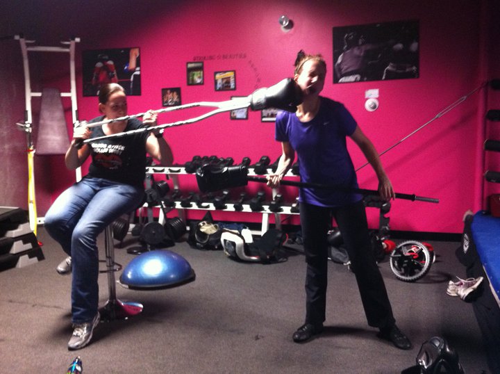 ...to Courtney Saunders for contributing to my H4H fundraising. Courtney is the former mayor of SB who is currently on hiatus due to injury and the fact that she's cheating on us with roller derby. NBD. Despite being crippled, she occasionally still shows up at the gym to bully people: